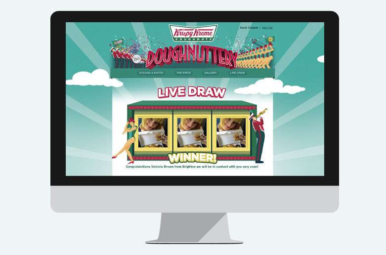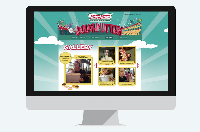 Description:In-store POS encouraged customers to enter an online competition where they could upload a picture of themselves with a doughnut and share the photo on Facebook. The best images were added to the online gallery.